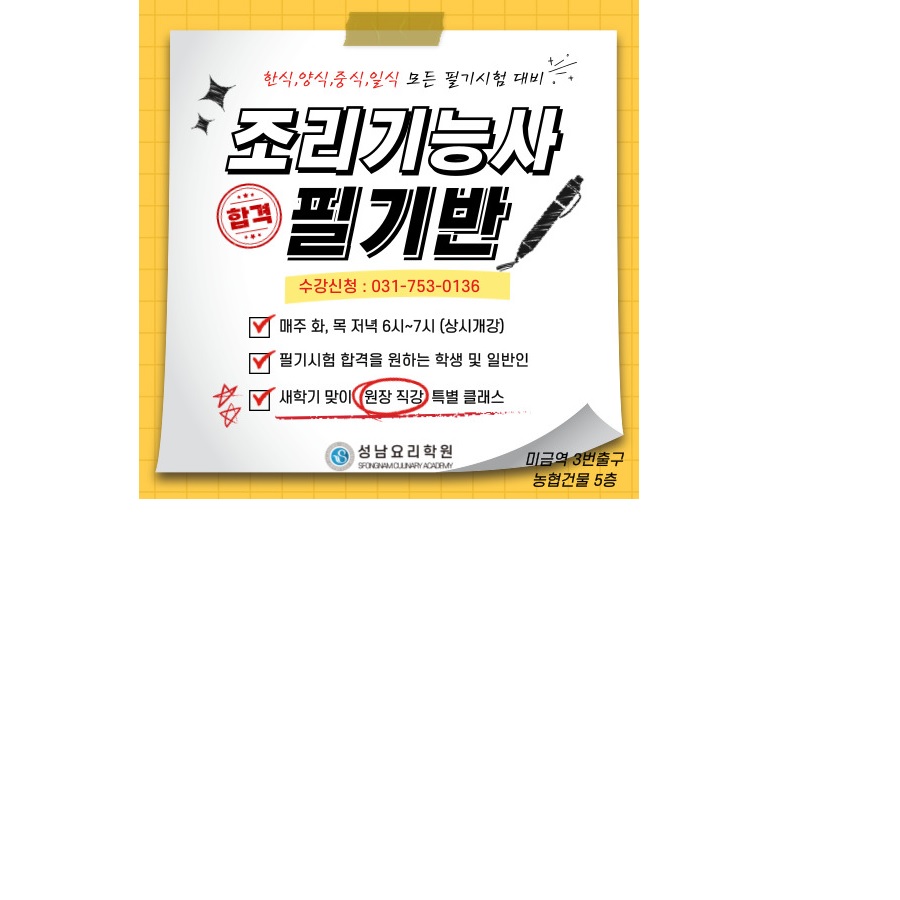 | ÇѽÄÁ¶¸®±â´É»ç Ãëµæ°úÁ¤(½Ç±â)-Àú³á¹Ý | 6.16 ~ 8.20(20ȸ) | È,¸ñ 19:00~22:00 | 20 | 526,000¿ø |