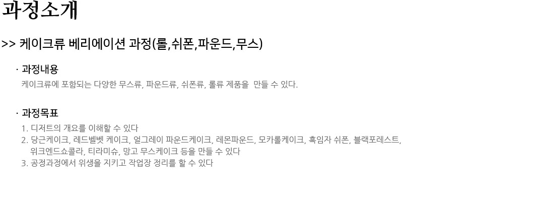 | 100% ½Ò·Î ¸¸µç º£ÀÌÅ·°úÁ¤ II | 1/7 - 2/4 (¿ù,¼ö,±Ý ¿ÀÀü) | 09:30 ~ 12:30 [13ȸ] | 18¸í | 365,200¿ø |