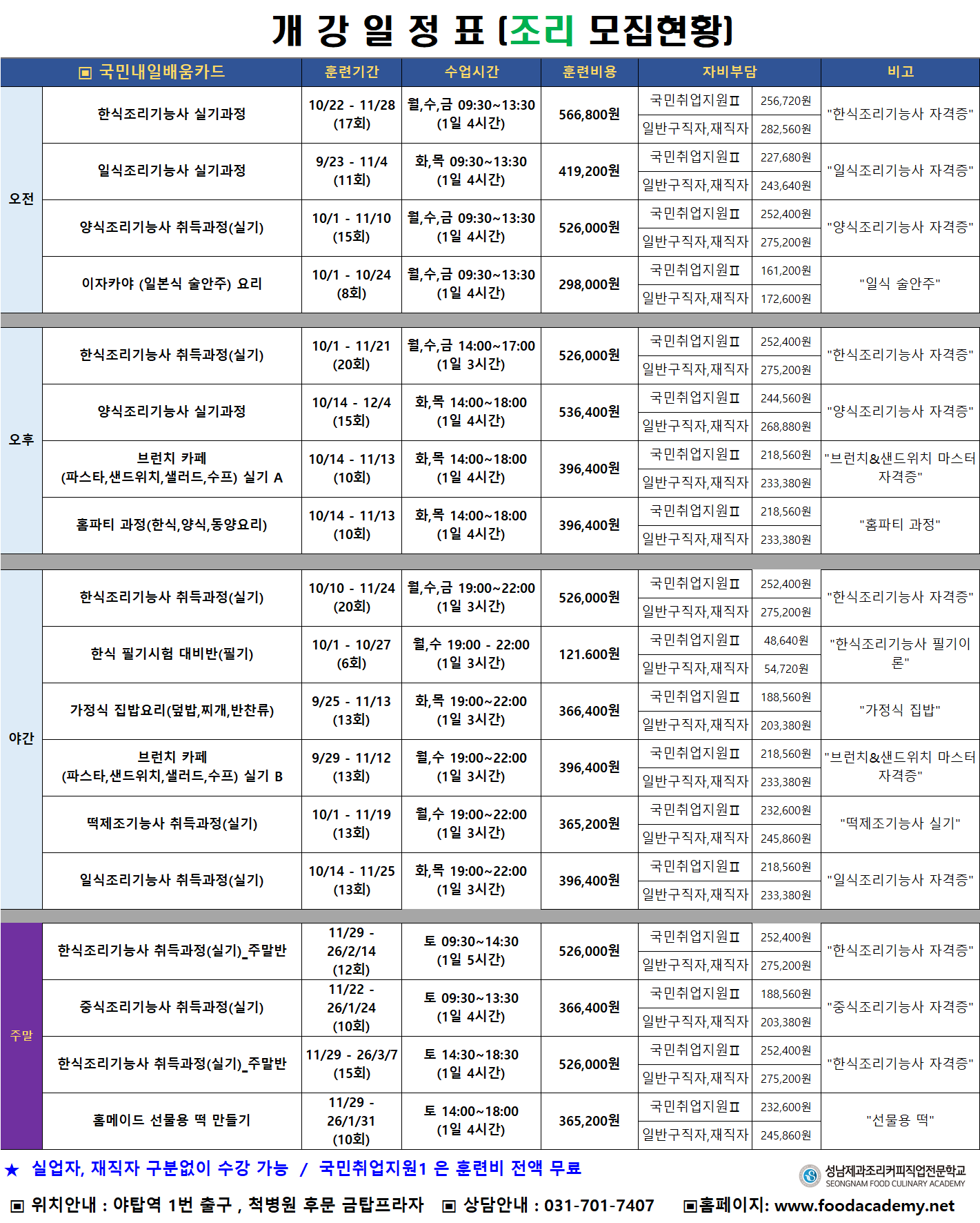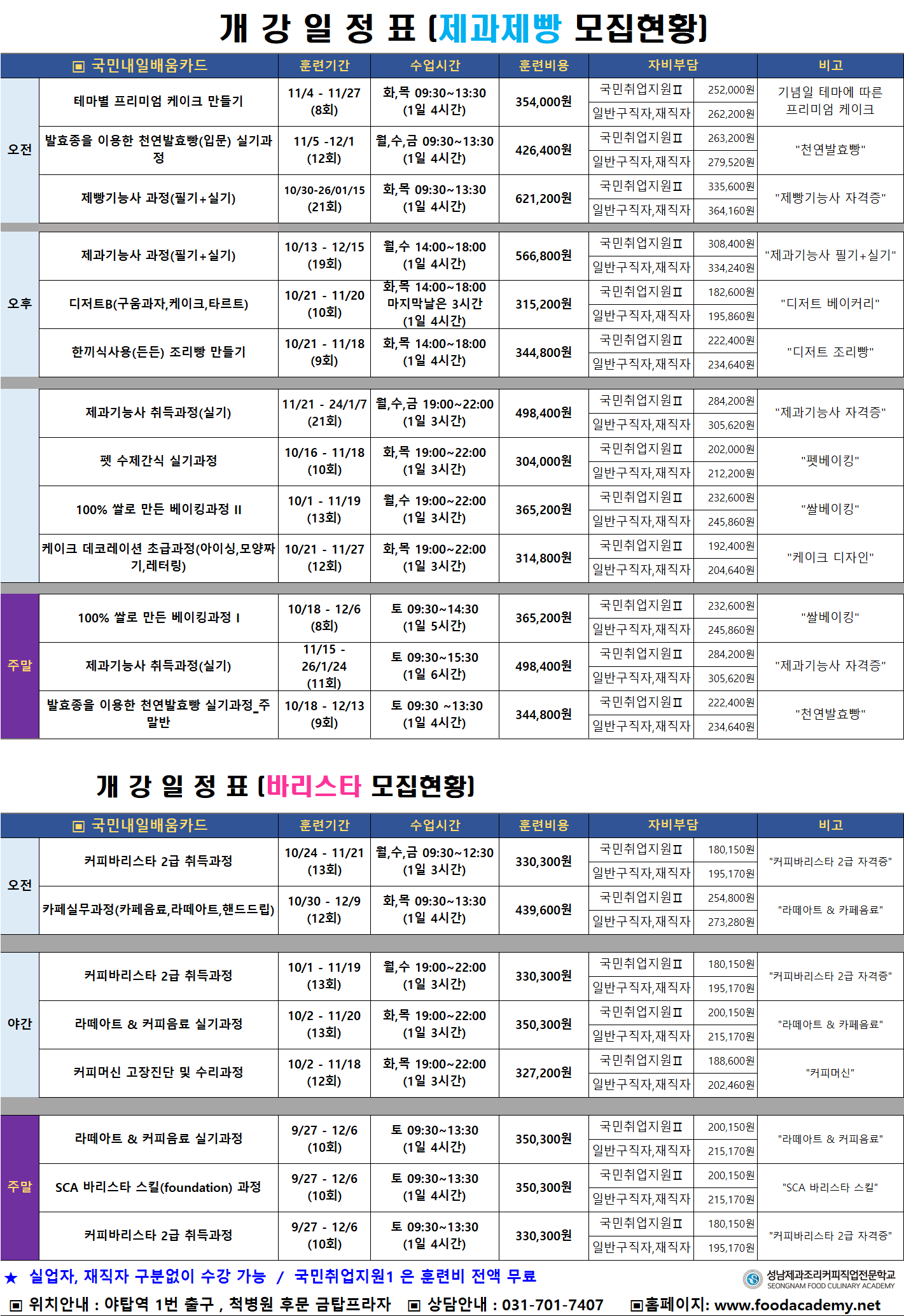 [¾ßžÁ¡] 10-11¿ù °³°ÀÏÁ¤Ç¥ (Á¶¸®/Á¦°úÁ¦»§/¹Ù¸®½ºÅ¸)