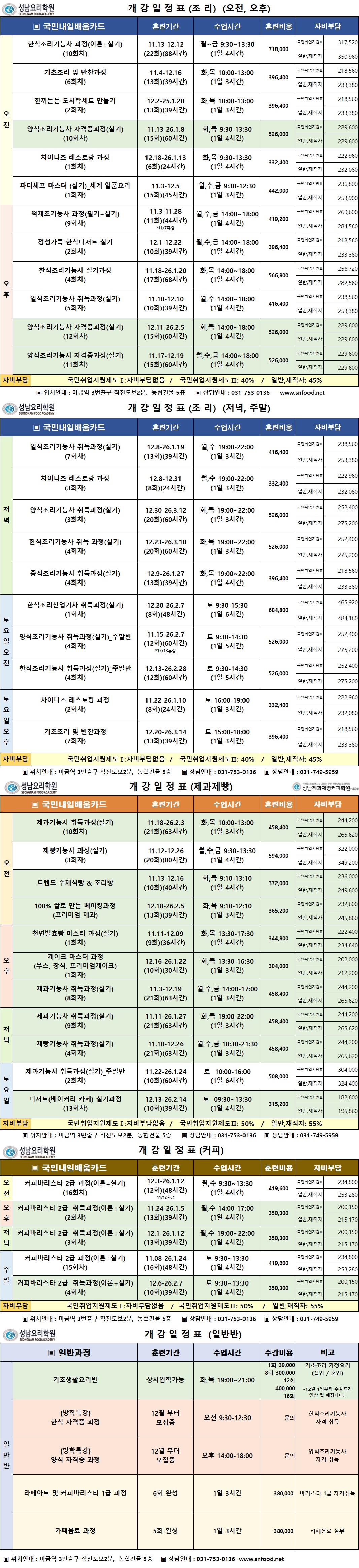 [¾ßžÁ¡] 11-12¿ù °³°ÀÏÁ¤Ç¥ (Á¶¸®/Á¦°úÁ¦»§/¹Ù¸®½ºÅ¸)