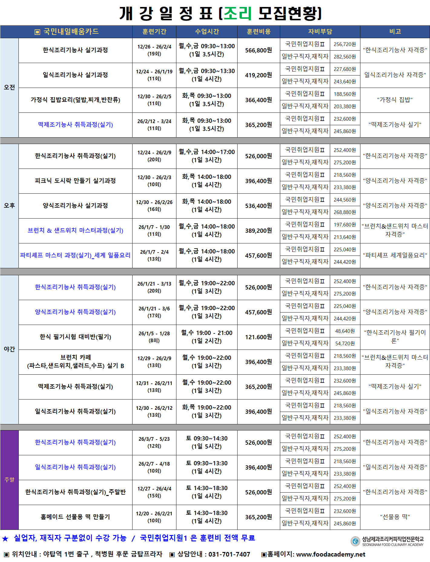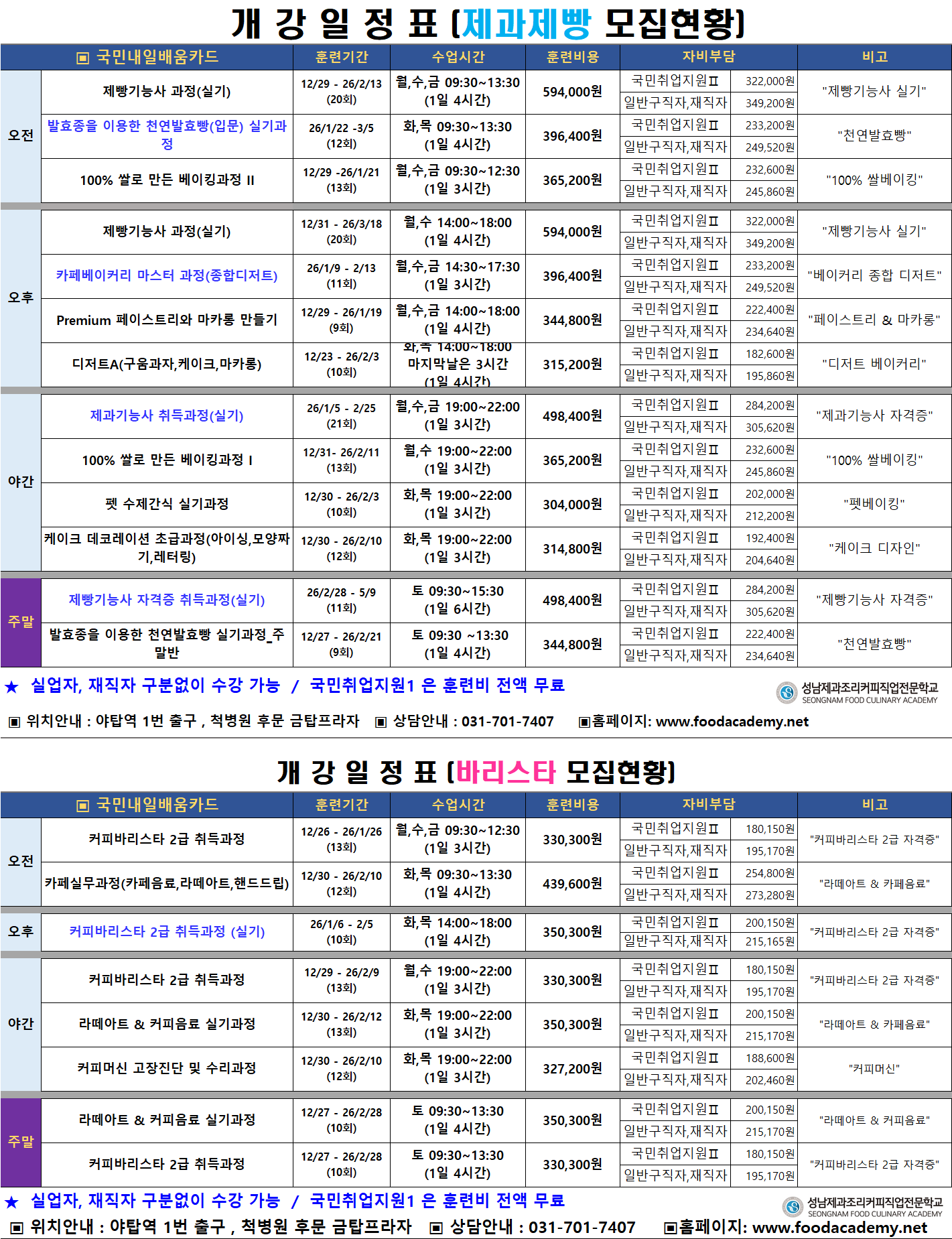 [¾ßžÁ¡] 12¿ù~2¿ù °³°ÀÏÁ¤Ç¥ (Á¶¸®/Á¦°úÁ¦»§/¹Ù¸®½ºÅ¸)