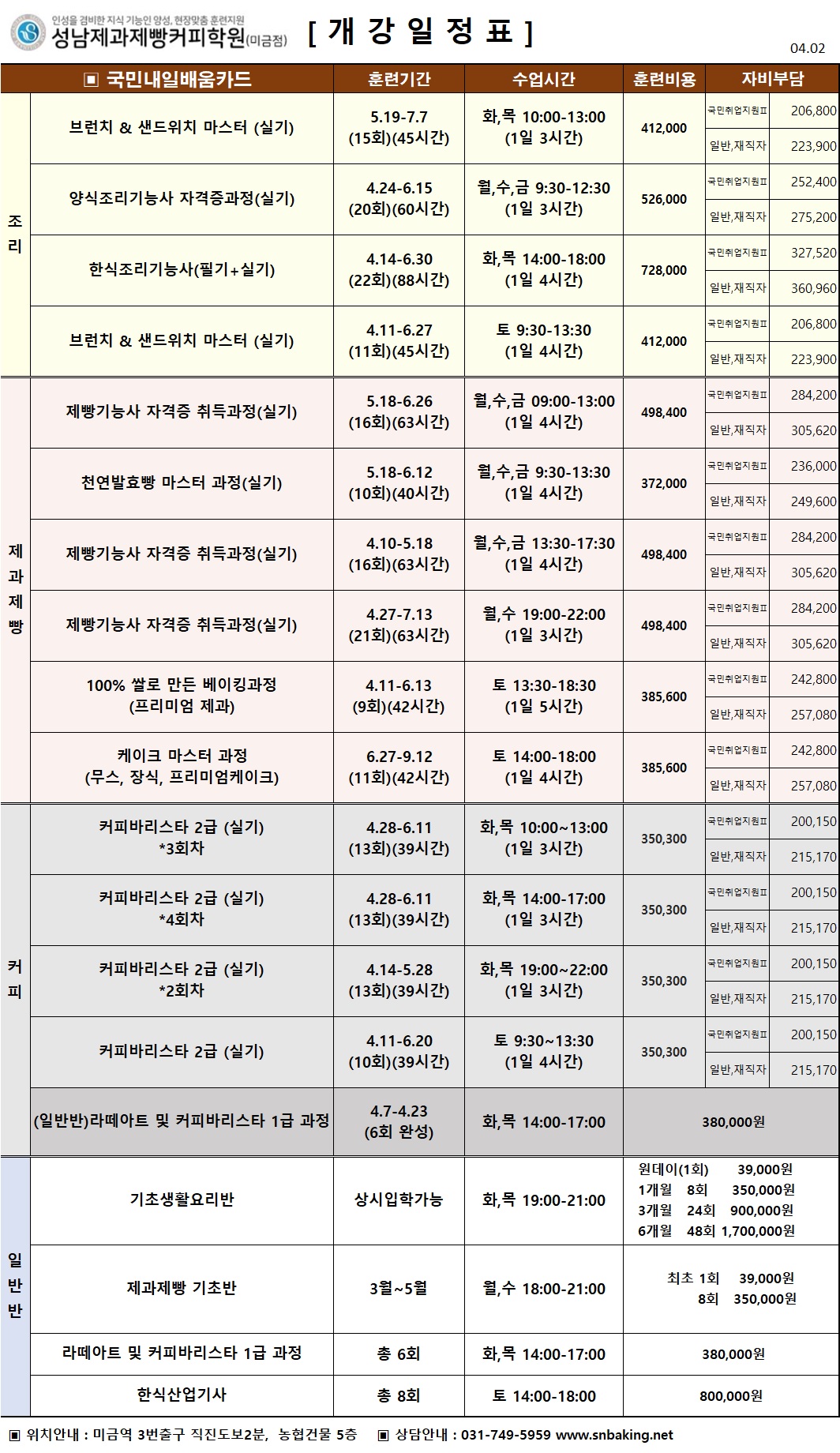 [¾ßžÁ¡] 2¿ù~5¿ù °³°ÀÏÁ¤Ç¥ (Á¶¸®/Á¦°úÁ¦»§/¹Ù¸®½ºÅ¸)