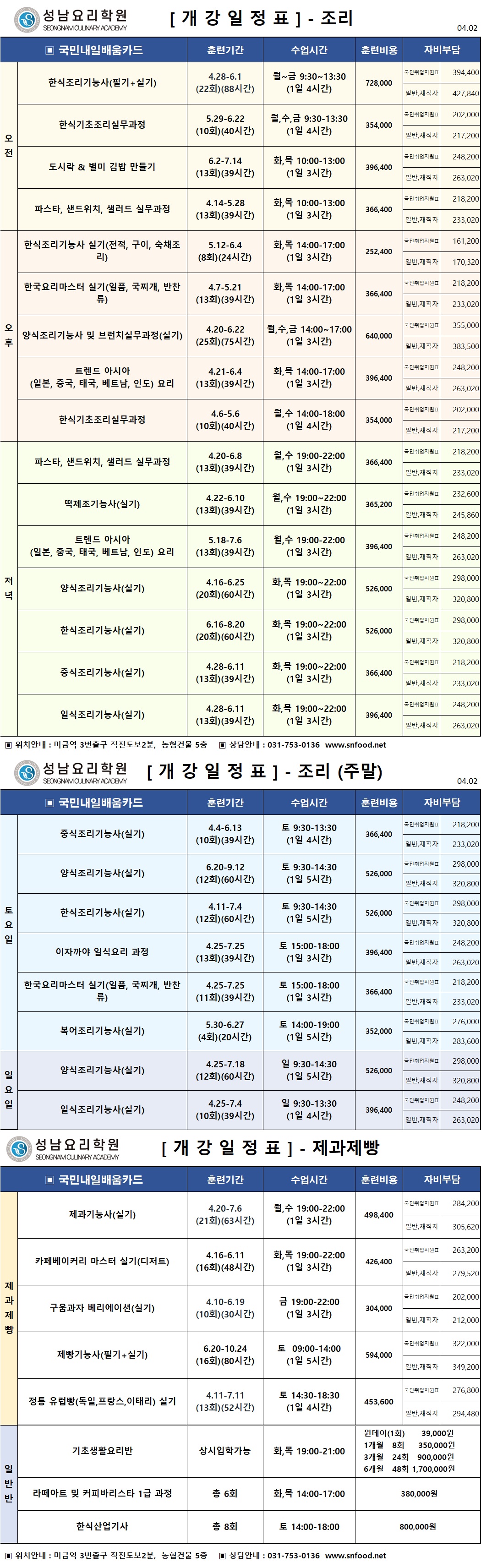 [¾ßžÁ¡] 4¿ù~6¿ù °³°ÀÏÁ¤Ç¥ (Á¶¸®/Á¦°úÁ¦»§/¹Ù¸®½ºÅ¸)
