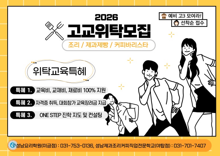 ¡¤ ±³À°±â°£ 2026.03.09 ~ 2025.01.04 ¡¤ ±³À°½Ã°£ 09:00~16:40 ¡¤ ±³À°Àοø 20¸í ¡¤ °»ç ¡¤ ¼ö°·á Àü¾×¹«·á, Àå·Á±Ý Áö±Þ ¡¤ Àںδã¾× ¾øÀ½ ![]() 2026 ÀÏ¹Ý°í °í±³À§Å¹»ýÀ» ¸ðÁýÇÕ´Ï´Ù. ÀÏ¹Ý°í °í±³À§Å¹ ÈÆ·Ã°úÁ¤À̶õ? °í¿ë³ëµ¿ºÎ¿Í ±³À°ºÎ¿¡¼ Àü¹® Á÷¾÷±³À°À» Èñ¸ÁÇÏ´Â ÀϹݰí 3Çгâ ÇлýÀÌ ÁöÁ¤µÈ ÈÆ·Ã±â°ü¿¡¼ ±³À°À» ¹Þ°í ÁøÇÐ, Ãë¾÷ÇÒ ¼ö ÀÖµµ·Ï µµÀÔÇÑ ÀÏ¹Ý°í Æ¯È Á÷¾÷´É·Â°³¹ß ÈÆ·Ã°úÁ¤ÀÔ´Ï´Ù. Áö¿ø´ë»ó ÀÏ¹Ý°è °í±³ 3Çгâ ÁøÇÐ ¿¹Á¤ Çлý, Á¶¸®/Á¦°úÁ¦»§/¹Ù¸®½ºÅ¸ °ü·Ã Àü°øÇаú ÁøÇÐ ¶Ç´Â Ãë¾÷À» Èñ¸ÁÇÏ´Â Çлý, Á¶¸®/Á¦°úÁ¦»§/¹Ù¸®½ºÅ¸ °ü·Ã ÀÚ°ÝÁõ ÃëµæÀ» Èñ¸ÁÇÏ´Â Çлý ±³À° ƯÀü 1. ÈÆ·Ãºñ, ±³Àçºñ, Àç·áºñ 100% Àü¾× ¹«·á 2. ÈÆ·ÃÀå·Á±Ý Áö±Þ 3. Çлýº° 1:1 ¸ÂÃãÇü Áø·ÎÁöµµ ¹× ÄÁ¼³ÆÃ Áö¿øÀýÂ÷ 6¿ù ~ 12¿ù - °í±³À§Å¹ ¿ø¼ Á¢¼ö ÁøÇà 9¿ù ~ 12¿ù - 1:1 ¸éÁ¢ (»ýȰ±â·ÏºÎ ÁöÂü) 12¿ù ~ 1¿ù - ÇÕ°ÝÀÚ ¹ßÇ¥ 1¿ù ~ 2¿ù - ±¹¹Î³»ÀϹè¿òÄ«µå ¹ß±Þ ¹× ÈÆ·Ã»ý µî·Ï 3¿ù - °í±³À§Å¹ ÀÔÇÐ½Ä |