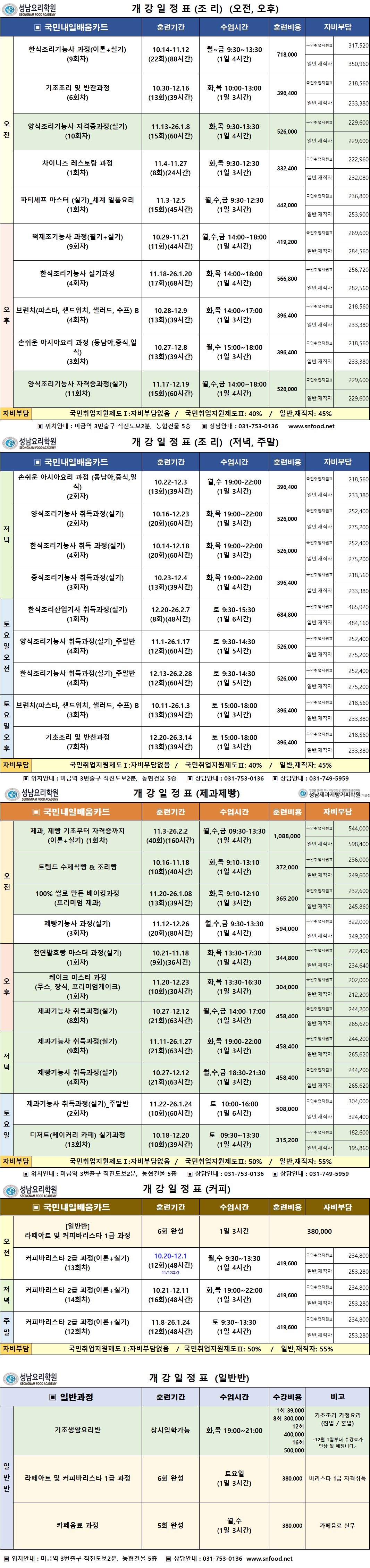 [¾ßžÁ¡] 10-11¿ù °³°ÀÏÁ¤Ç¥ (Á¶¸®/Á¦°úÁ¦»§/¹Ù¸®½ºÅ¸)