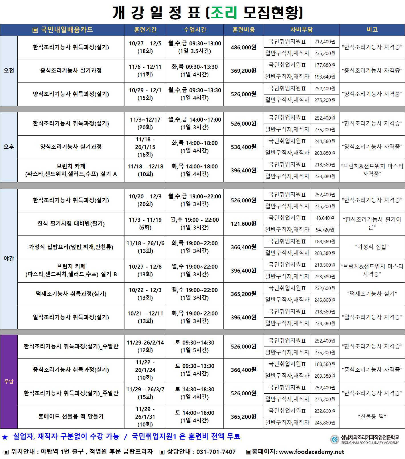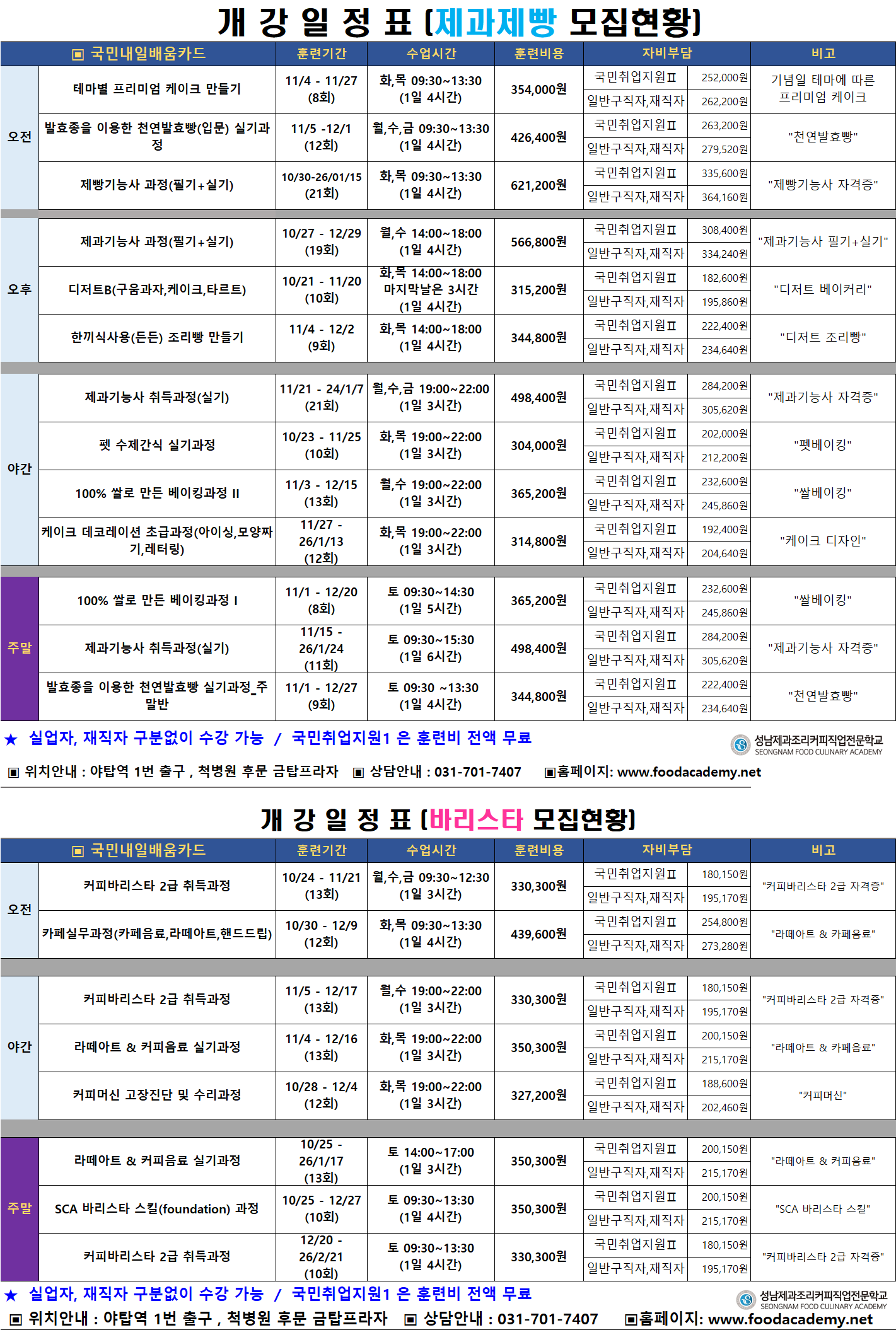 [¾ßžÁ¡] 10-11¿ù °³°ÀÏÁ¤Ç¥ (Á¶¸®/Á¦°úÁ¦»§/¹Ù¸®½ºÅ¸)