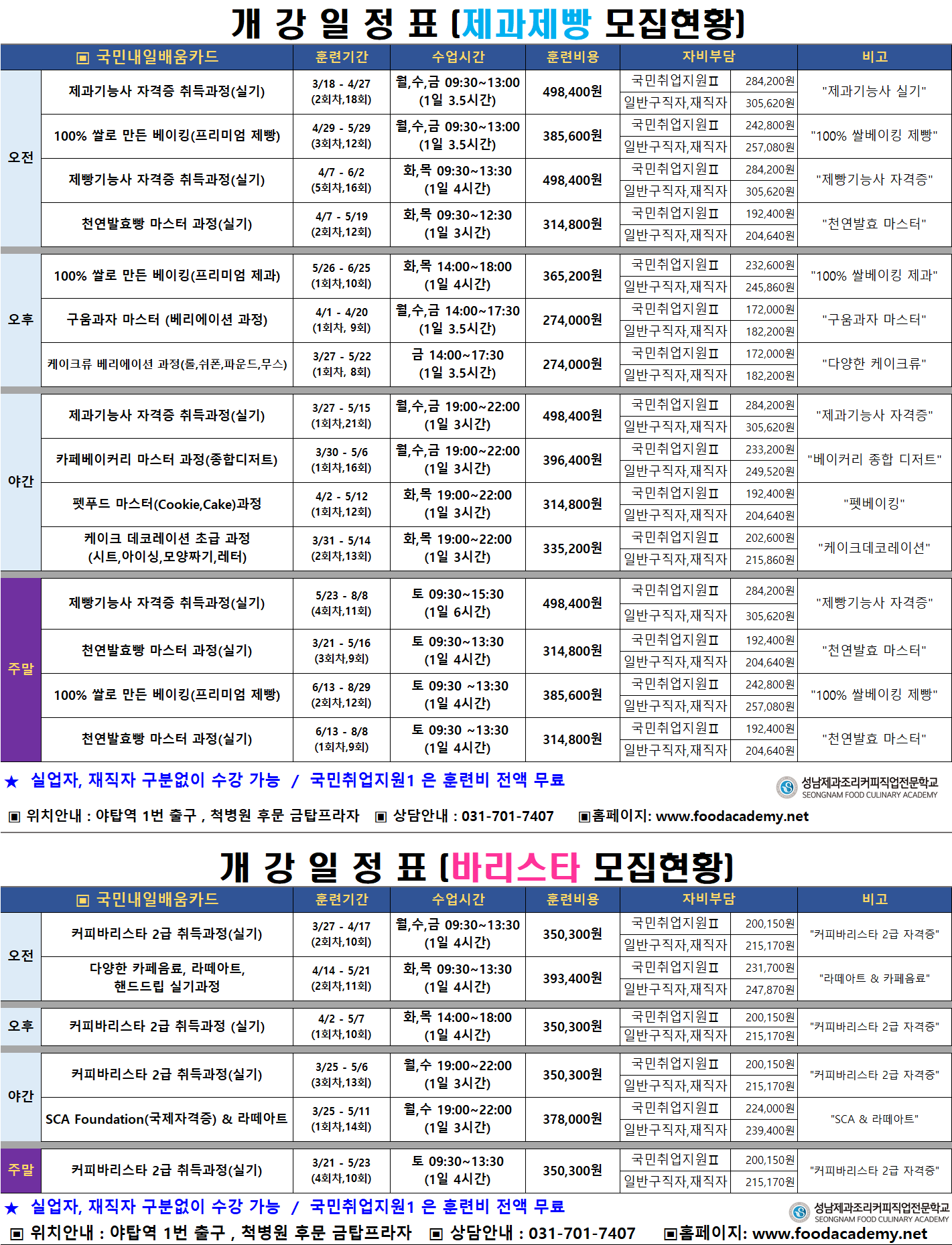 [¾ßžÁ¡] 1¿ù~3¿ù °³°ÀÏÁ¤Ç¥ (Á¶¸®/Á¦°úÁ¦»§/¹Ù¸®½ºÅ¸)