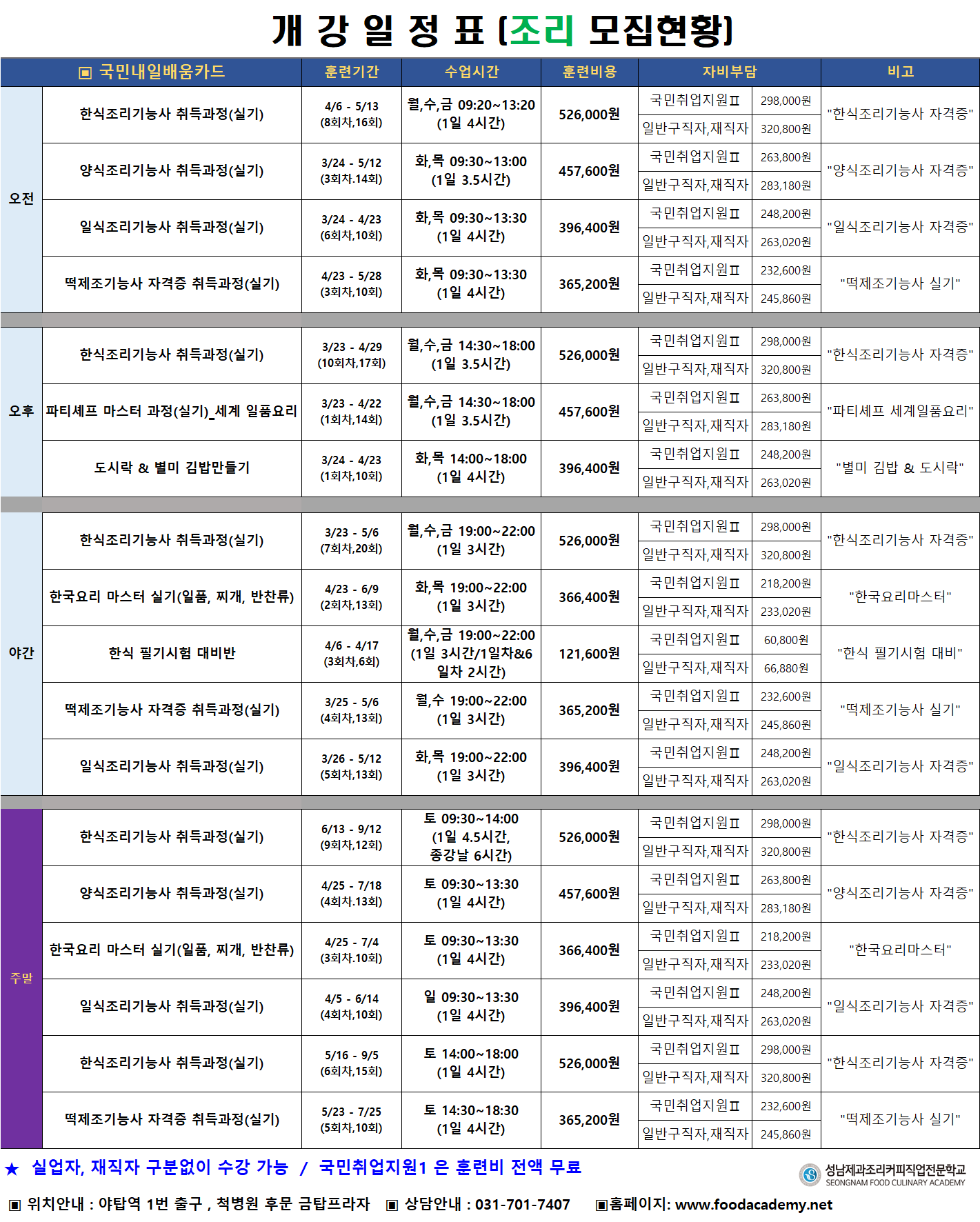 [¾ßžÁ¡] 2¿ù~5¿ù °³°ÀÏÁ¤Ç¥ (Á¶¸®/Á¦°úÁ¦»§/¹Ù¸®½ºÅ¸)