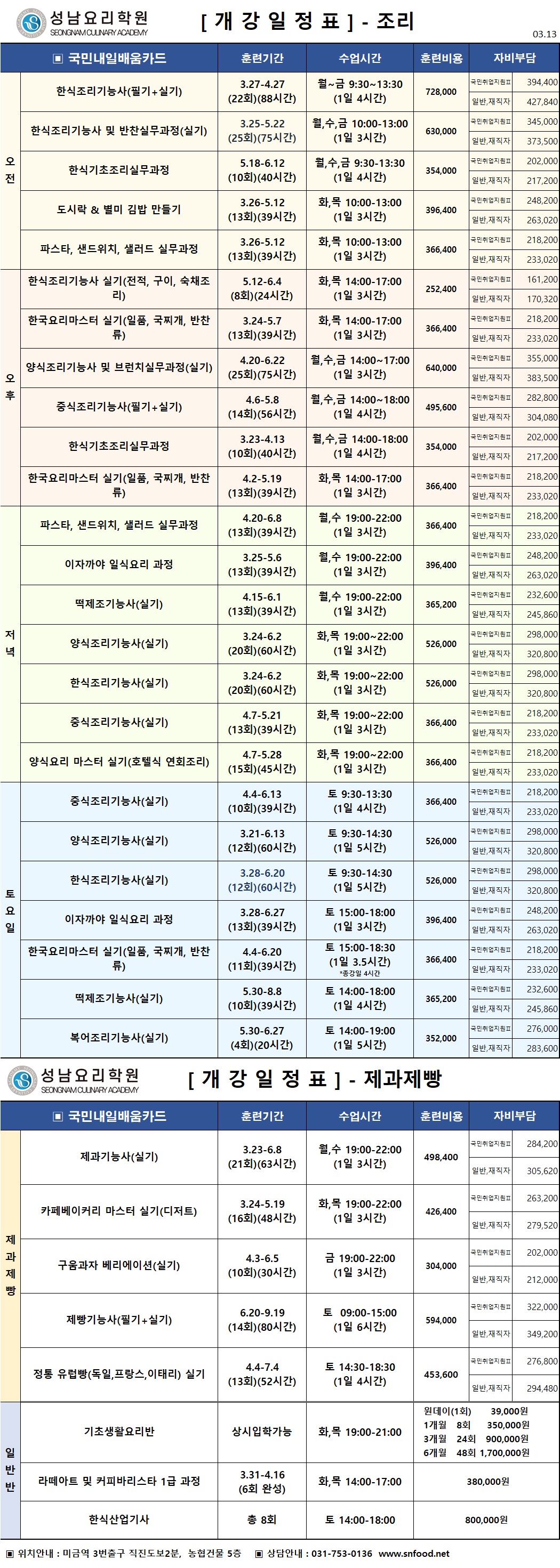 [¾ßžÁ¡] 3¿ù~6¿ù °³°ÀÏÁ¤Ç¥ (Á¶¸®/Á¦°úÁ¦»§/¹Ù¸®½ºÅ¸)