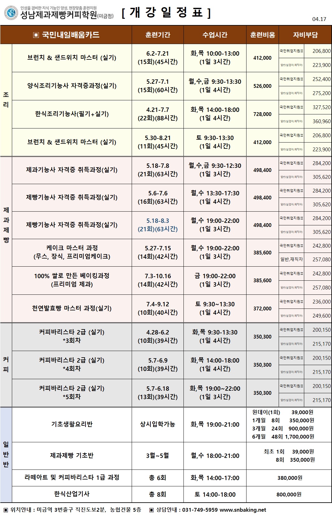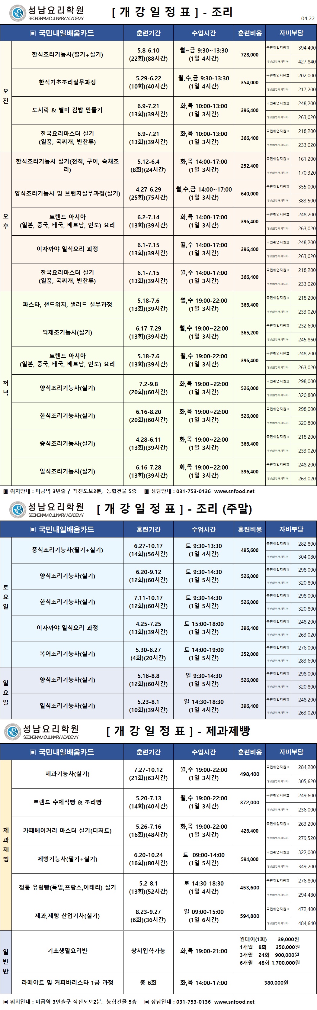 [¾ßžÁ¡] 4¿ù~6¿ù °³°ÀÏÁ¤Ç¥ (Á¶¸®/Á¦°úÁ¦»§/¹Ù¸®½ºÅ¸)